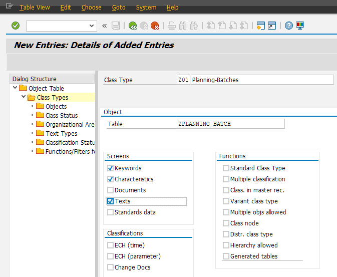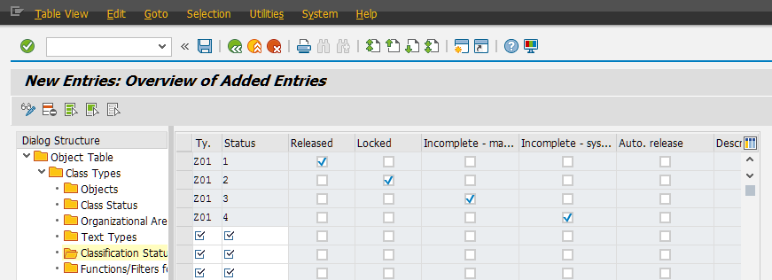 For a recent project, we were required to link the classification system to entries in a custom Z-table. To make it easier to understand, I’ve simplified the table structure and excluded non-essential fields, leaving only the primary key.